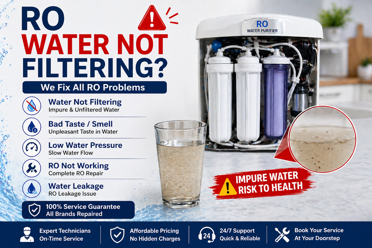 RO water purifier is not filtering water properly, it can affect the quality and safety of your drinking water. This issue is usually caused by clogged filters, a damaged membrane, or low water pressure.
